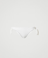 Tanga de baño con bordado de bordado inglés, lazos ajustables en las caderas y logotipo de corazón metálico en la espalda.