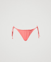 Tanga de baño en tejido bicolor reversible con lazos regulables en los laterales y fruncidos en la cintura.