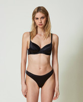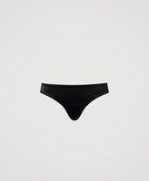 Braguita tanga de raso elástico con elástico suave en el interior de la cintura, corazón de metal dorado con logotipo en la parte trasera.