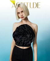 Una prenda clave para ocasiones especiales. Top corto de duquesa construido con una banda recta y una aplicación de rosa de tamaño maxi fruncida en la parte delantera, con cierre de cremallera en el lateral. Perfecto para darle un toque icónico a cada uno de tus looks.