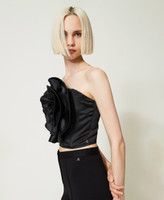 Top corto de la colección Actitude de duquesa con una rosa de tamaño maxi aplicada y cierre con cremallera en el lateral.