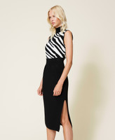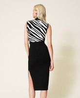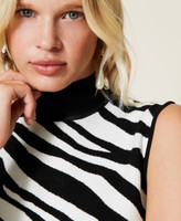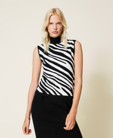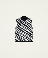 Top de punto jacquard piqué de diseño animal print de viscosa elástica, cuello alto y sin mangas.