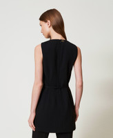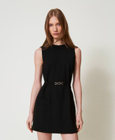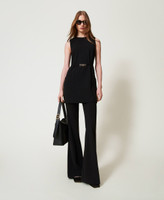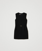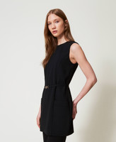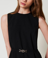 Túnica fabricada en Italia en crepé fluido elástico con cinturón extraíble a juego con mosquetón Oval T cerrado en la parte posterior con botones automáticos. Presenta un cuello redondo, bolsillos horizontales insertados en los cortes, cierre con cremallera y placa con logotipo en la parte trasera, forro y corte ceñido.