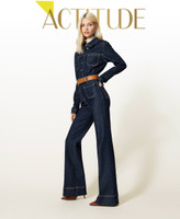 Vaqueros rinse de talle alto de la colección Actitude, con corte bell bottom, cierre con cremallera y botón con logotipo y bolsillos aplicados.