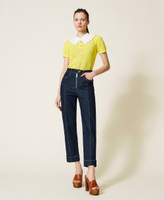 Vaqueros de la colección Actitude con lavado rinse azul oscuro, pernera recta, acanalado en el centro y vuelta en el bajo.