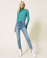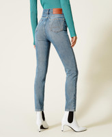 Vaqueros pitillo de la colección Actitude con lavado a la piedra, talle alto, cinco bolsillos, tachuelas en la parte delantera y logotipo en la parte trasera.