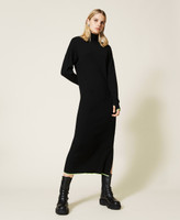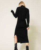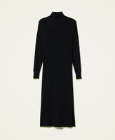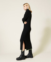 Vestido largo de la colección Actitude en mezcla de viscosa acanalada, vivos en amarillo fluorescente, abertura lateral y corte recto.