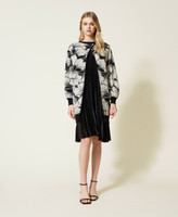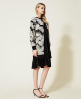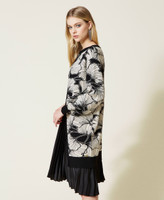 Puedes llevar este vestido de punto de viscosa elástica con estampado jacquard de piqué allover inspirado en la hoja de ginkgo desde el lado que prefieras. Tiene corte holgado, escote de barco, apertura en un lado, vivos acanalados de color liso y mangas largas con hombros caídos. Se combina con una combinación de raso plisado con tirantes regulables y corte en A. Puedes llevarlo en looks de día a noche combinándolo con un bolso tote y unos botines.