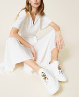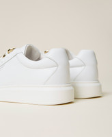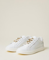 Zapatillas de piel de becerro con cadena decorativa de color oro, cierre de cordones y suela de goma.