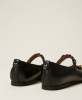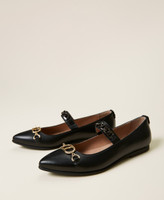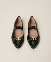 Bailarinas de piel de becerro con estribo dorado, correa elástica y cadena y suela de goma.