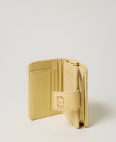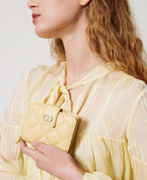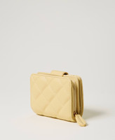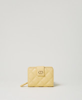 Cartera con cremallera «Audrey» pequeña con efecto de napa de cordero pespunteada y ligeramente acolchada, con personalización Oval T de metal. Cierre con correa y botón automático, compartimentos internos para billetes, tarjetas de crédito y monedas.