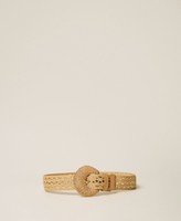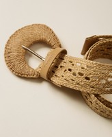 Cinturón de efecto rafia con motivo de ganchillo con hebilla forrada y logotipo estampado en caliente en la presilla.