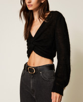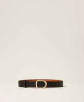 Cinturón reversible de talle estándar de piel con hebilla desmontable en galvanizado dorado y presillas en contraste.