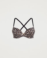 Sujetador push-up acolchado con copas extraíbles, lazo y tirantes que también se pueden enganchar cruzados por la parte trasera.