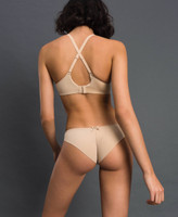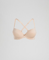 Sujetador push-up acolchado con copas extraíbles, lazo y tirantes que también se pueden enganchar cruzados por la parte trasera.