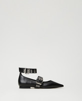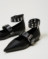Ballerines de la collection Actitude effet cuir avec bout pointu, brides rehaussées de boucles et d’œillets, semelle en caoutchouc.