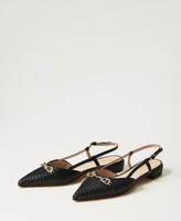 Ballerines slingbacks effet cuir avec motif tressé, barrette Oval T et bout pointu.