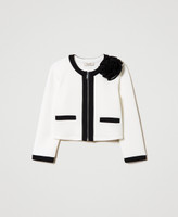 Blouson sans col en scuba de viscose stretch avec fleur appliquée, finitions en couleur contrastée et fermeture éclair en métal.