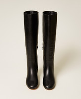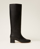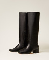 Bottes en cuir avec tige tubulaire, talon large et carré, semelle en tunit.