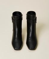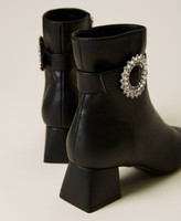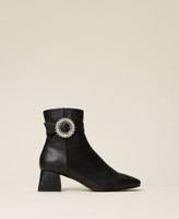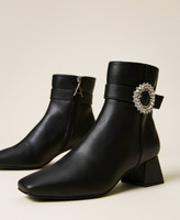 Bottines de la collection Actitude effet cuir avec boucle bijou, fermeture éclair latérale intérieure, talon carré.