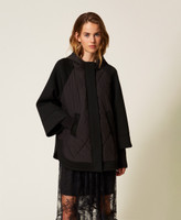 Caban en scuba et nylon matelassé avec capuche. Il présente des manches longues raglan, avec grands poignets et poignets coupe-vent côtelés, une fermeture éclair en métal et des boutons-pression sous patte, des poches passepoilées, une étiquette siglée en métal sur la capuche et une coupe légèrement évasée.