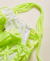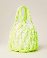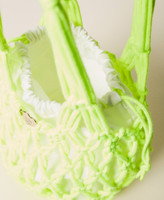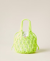 Cabas en corde tressée et nouée avec anses et sac intérieur amovible doté d’un cordon coulissant.