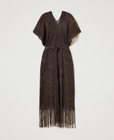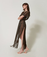 Caftan long en filet et lurex avec franges
