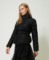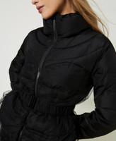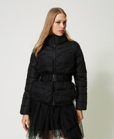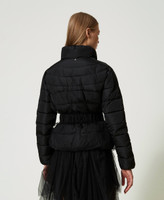 Doudoune courte de la collection Actitude en nylon doublé de tulle, avec rembourrage technique, ceinture assortie et doublure.
