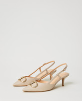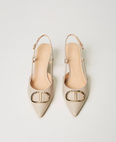 Escarpins slingbacks en cuir de veau avec bout pointu, logo Oval T sur le devant et semelle en tunit.