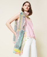 Étole en tissu fluide multicolore avec mélange d’imprimés bandana.