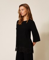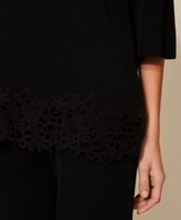 Maxi pull en fil de viscose mélangée avec application de dentelle macramé festonnée dans le bas. Il présente un col rond, des manches longues, un cœur siglé en métal dans le dos et une coupe fluide.