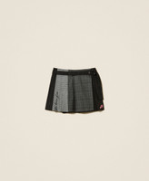 Mini-jupe signée par l’artiste MYFO pour la collection Actitude en tissu teint en fil à carreaux avec plis et broderies contrastées. Elle présente une fermeture éclair sur le côté, une ceinture réglable avec un double anneau en métal fixé sur un côté et une coupe droite.