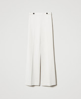 Pantalon en jersey de viscose mélangée avec armure point de Milan et pattes de serrage sur le devant dotées de boutons bijoux en émail noir rehaussés d’un bord doré facetté. Il présente une taille regular, une fermeture éclair sur le côté, des poches à double liseré et une étiquette siglée Oval T à l’arrière, un pli marqué et une coupe ample.