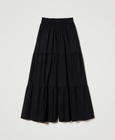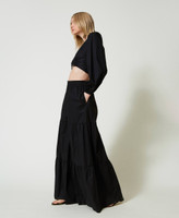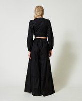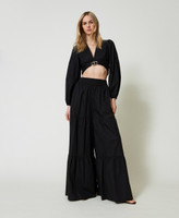 Pantalon ample en popeline de coton stretch avec volants froncés, taille élastique et poches sur les côtés.