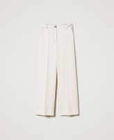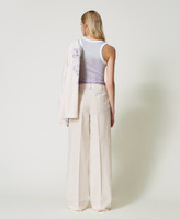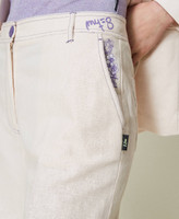 Pantalon palazzo édition limitée de la collection Actitude en lin et coton avec imprimé placé toile de Jouy et poches italiennes.