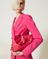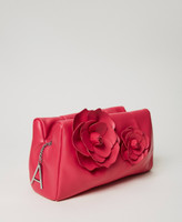 Pochette de la collection Actitude effet cuir souple avec fleurs 3 D appliquées, fermeture éclair et tirette siglée.
