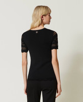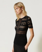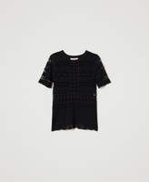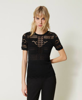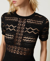 Pull en viscose stretch tricotée en point dentelle avec mélange de finitions et de transparences, insertions en dentelle de coton et coupe ajustée.