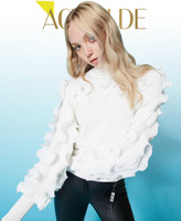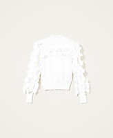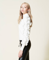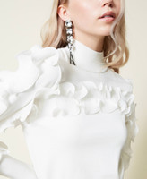 Pull col montant de la collection Actitude avec volants ondulés en crêpe georgette plissé, manches longues et détails côtelés.