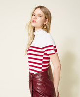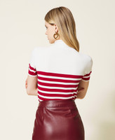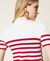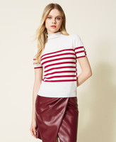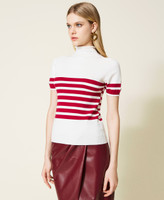 Pull col montant en viscose mélangée stretch sans coutures, avec manches courtes, Oval T ajouré et coupe ajustée.