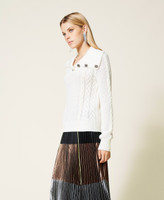 Le côté cool de la maille. Pull regular en laine mélangée avec finition en point de riz et torsades latérales, col et poignets côtelés, ruban extra-fort jaune fluo inséré. Col avec boutons métalliques et étoile à l’intérieur.