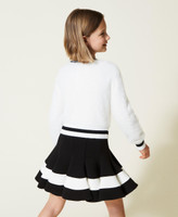 Doux, essentiel, versatile. Le pull pour fille en viscose mélangée tricotée en point fourrure arbore des rayures contrastées. Il présente une coupe regular, un col rond, des bords-côtes et le logo Oval T incrusté sur le devant. Avec un denim ou une petite jupe selon l’occasion.