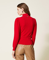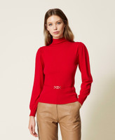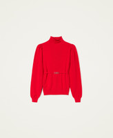 Pull col roulé sans coutures en viscose mélangée avec épaules froncées et ceinture amovible dotée d’une barrette Oval T.