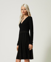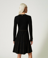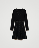 Robe courte en viscose stretch avec encolure en V et jupe rehaussée d’une finition tubulaire effet plissé et de clous.