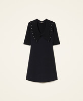 Robe courte de la collection Actitude en viscose stretch avec col rehaussé de strass et festons au crochet réalisés à la main.