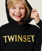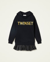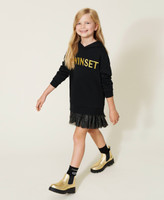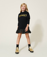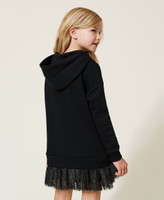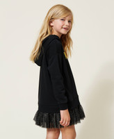 Robe courte en molleton de coton lainé au toucher chaud avec volant en tulle pailleté et logo brodé en fil.