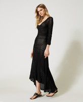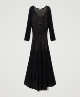 Robe longue en viscose stretch tricotée en point dentelle avec mélange de finitions et de transparences, manches longues et fond de robe assorti.