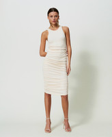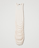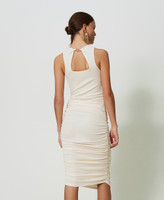 Robe midi en jersey de viscose crêpé avec drapés sur les côtés, col rond, larges bretelles et encolure dans le dos dotée d’une boucle Oval T.