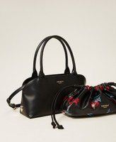 Sac bowling effet cuir de veau lisse avec double anse tubulaire pour un porté main et inscription siglée en métal. Son intérieur contient un sac amovible effet cuir nappa souple, rehaussé de l’imprimé de la collection, avec cordon de serrage sur les côtés et inscription siglée en métal. La bandoulière amovible réglable peut être attachée aux deux sacs.