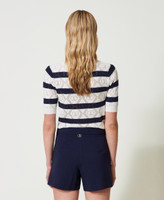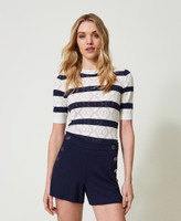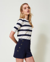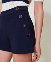 Short en viscose mélangée stretch point de Milan avec double rangée de boutons en métal rehaussés du logo Oval T.