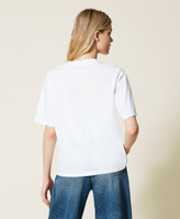 T-shirt regular en jersey de coton avec patch appliqué de feuilles de ginkgo entièrement brodées de sequins.